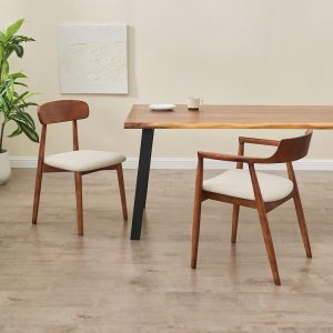 We designed our armless chair to save space while still being optimally sized for comfort. These chairs are made to match our dining table, aligning perfectly along the sides to create a cohesive and elegant dining experience. The style is thoughtfully crafted to complement all types of interiors – from minimalist to rustic and everything in between.