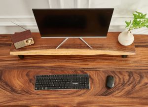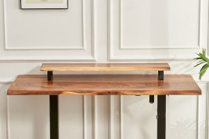 Made with 100% solid South American walnut (Samanea saman) and sleek, steel U shaped legs, we are excited to offer our newest product. Finished the same way we finish all of our tabletops, our monitor stand seamlessly fits in with all of our desks. Add additional storage, ergonomics and comfort to your work space.